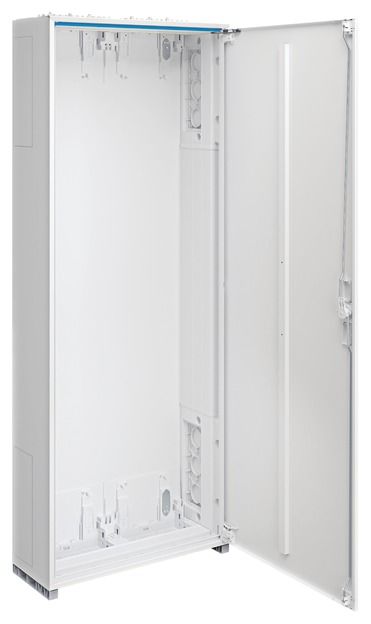Door flush with the front with internal, adjustable hinges, can be opened either on the right or left with an opening angle of 110°. Door lock with sash, from a width of 800 mm and for all cabinets from a height of 1250 mm with a rod lock with three-point locking. Door lock can be replaced with other locks. Cabinets can be flanged next to each other and on top of each other. Cabinet size 1 to 5 fields with 72 to 540 space units (PLE).