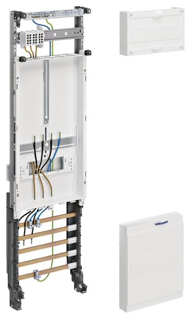 Complete panel, universZ, 900mm, 1 panel, 1 meter position, NRW, SH, MV, N-Saxony, EON-Mitte. Meter cabinet solution cabinet housing according to DIN VDE 0603/1, dimensional standard DIN 43 870 for surface-mounted, flush-mounted or partially recessed installation. Consists of a cabinet with door made of powder-coated, baked-in, stably profiled 1 mm thick sheet steel. Interior lining made entirely of plastic. Cable entries at the top and bottom through built-in plastic flange plates. Pre-punched part on the back of the plastic part. Busbar bushings as flanges on both sides that can be opened without tools in the lower area as a way of connecting busbars between different cabinets or in conjunction with a cable junction box and connection set. In addition to the bushing in the NAR, there are also openings in the area of the AAR (for heights of 1100 and 1400 mm) and RfZ (for heights of 1100 mm). Door flush with the front with internal, adjustable hinges, can be opened on the right or left with an opening angle of 110°. Door lock with cam lock. Door lock can be replaced with other locks. Cabinets can be flanged next to each other or one above the other. Cabinet size 1 to 5 fields with 72 to 540 space units (PLE). Note: The main line must be inserted into the lower connection compartment of the meter cabinet from below or from the side and connected there in accordance with VDE-AR-N 4100:2019-04. Height: __ mm (1100mm or 1400mm) Width: __ mm Depth: 205 / 160 mm, RAL color: 9010 Protection type 44, protection class II Nominal current of the busbar system 250 A Design in accordance with VDE-AR-N 4100:2019-04 Meter system for __ meter space(s). According to the technical connection conditions (TAB) of the VNB __ for: __ Electronic household meters (eHZ) or __ meters with 3-point fastening (3HZ). __ for supply systems with normal household consumption max. 63 A (10mm²) according to DIN 18015-1 (__ apartments, __ general, __ reserve, __ heat pump) __ for continuous current applications max. 32 A (10 mm²) according to VDE-AR-N 4100:2019-04 (e.g. PV up to 22 KW) __ for continuous current applications max. 44 A (16 mm²) according to VDE-AR-N 4100:2019-04 (e.g. PV up to 30 KW) __ for meter locations with more than 63 A in intermittent operation or 44 A in continuous operation (transformer measurement) Nominal current _ A, nominal power _ kW __ Tariff ripple control receiver as three-point version alternatively __ Tariff ripple control receiver as top-hat rail version __ Distribution panel (__ PLE), with/without busbars for feeding in __ Distribution panel (__ PLE) with APZ room according to VDE-AR-N 4100:2019-04, with/without busbars for feed-in __ Communication panel, 1- or 2-panel __ Communication panel with APZ room according to VDE-AR-N 4100:2019-04, with/without busbars for feed-in __ SLS switch Hager HTS3xxE in __ A.. Voltage tap for power supply additional devices according to VDE-AR-N 4100:2019-04: __ before the SLS with fuse box pluggable 25 kA __ before the SLS with LS switch 10 A / 25 kA __ behind the SLS with fuse box pluggable 25 kA. Surge protection with combination arrester type 1/2/3 for busbar mounting in the UAR.To comply with the requirements of DIN VDE 0100-443 and -534: ___for TNS/TT network, without external lightning protection, back-up fuse in the HAK - 160 A ___for TNC network, without external lightning protection, back-up fuse in the HAK - 160 A ___for TNS/TT network, with external lightning protection, back-up fuse in the HAK - 160 A ___for TNC network, with external lightning protection, back-up fuse in the HAK - 160 A ___for TNS/TT network, with external lightning protection, back-up fuse in the HAK - 315 A ___for TNC network, with external lightning protection, back-up fuse in the HAK - 315 A Fuse for cellar, washing machine, dryer (if TAB / DIN compliant) per WE (max. 6 PLE) __ pieces of FI/LS switch 10 kA, 16 A, 30 mA (ADA516D). General distribution panel equipped with: __ pcs. LS switch 6 kA, 16 A (MBS116) __ pcs. FI/LS switch 6 kA, 16 A, 30 mA (ADS916D) __ pcs. RCD type 40 A 4-pole, 30 mA (CDS440D). Consisting of: __ pcs. ZB__S, meter cabinet __ pcs. ZK__ Complete panel for __ meters __ selected make/type: HAGER/univers Z or equivalent, supply, install and make ready for operation.