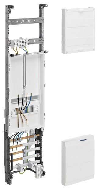 Complete panel, universZ, 1050mm, 1 meter position, 1 field, design: Bavaria. Meter cabinet solution cabinet housing according to DIN VDE 0603/1, dimension standard DIN 43 870 for surface-mounted, flush-mounted or partially recessed installation. Consists of a cabinet with door made of powder-coated, baked-in, stably profiled 1 mm thick sheet steel. Interior lining made entirely of plastic. Cable entries at the top and bottom through built-in plastic flange plates. Pre-punched part on the back of the plastic part. Busbar bushings as flanges on both sides that can be opened without tools in the lower area as a way of connecting busbars between different cabinets or in conjunction with a cable junction box and connection set. In addition to the bushing in the NAR, there are also openings in the area of the AAR (for heights of 1100 and 1400 mm) and RfZ (for heights of 1100 mm). Door flush with the front with internal, adjustable hinges, can be opened on the right or left with an opening angle of 110°. Door lock with cam lock. Door lock can be replaced with other locks. Cabinets can be flanged next to each other or one above the other. Cabinet size 1 to 5 fields with 72 to 540 space units (PLE). Note: The main line must be inserted into the lower connection compartment of the meter cabinet from below or from the side and connected there in accordance with VDE-AR-N 4100:2019-04. Height: __ mm (1100mm or 1400mm) Width: __ mm Depth: 205 / 160 mm, RAL color: 9010 Protection type 44, protection class II Nominal current of the busbar system 250 A Design in accordance with VDE-AR-N 4100:2019-04 Meter system for __ meter space(s). According to the technical connection conditions (TAB) of the VNB __ for: __ Electronic household meters (eHZ) or __ meters with 3-point fastening (3HZ). __ for supply systems with normal household consumption max. 63 A (10mm²) according to DIN 18015-1 (__ apartments, __ general, __ reserve, __ heat pump) __ for continuous current applications max. 32 A (10 mm²) according to VDE-AR-N 4100:2019-04 (e.g. PV up to 22 KW) __ for continuous current applications max. 44 A (16 mm²) according to VDE-AR-N 4100:2019-04 (e.g. PV up to 30 KW) __ for meter locations with more than 63 A in intermittent operation or 44 A in continuous operation (transformer measurement) Nominal current _ A, nominal power _ kW __ Tariff ripple control receiver as three-point version alternatively __ Tariff ripple control receiver as top-hat rail version __ Distribution panel (__ PLE), with/without busbars for feeding in __ Distribution panel (__ PLE) with APZ room according to VDE-AR-N 4100:2019-04, with/without busbars for feed-in __ Communication panel, 1- or 2-panel __ Communication panel with APZ room according to VDE-AR-N 4100:2019-04, with/without busbars for feed-in __ SLS switch Hager HTS3xxE in __ A.. Voltage tap for power supply additional devices according to VDE-AR-N 4100:2019-04: __ before the SLS with fuse box pluggable 25 kA __ before the SLS with LS switch 10 A / 25 kA __ behind the SLS with fuse box pluggable 25 kA. Surge protection with combination arrester type 1/2/3 for busbar mounting in the UAR.To comply with the requirements of DIN VDE 0100-443 and -534: ___for TNS/TT network, without external lightning protection, back-up fuse in the HAK - 160 A ___for TNC network, without external lightning protection, back-up fuse in the HAK - 160 A ___for TNS/TT network, with external lightning protection, back-up fuse in the HAK - 160 A ___for TNC network, with external lightning protection, back-up fuse in the HAK - 160 A ___for TNS/TT network, with external lightning protection, back-up fuse in the HAK - 315 A ___for TNC network, with external lightning protection, back-up fuse in the HAK - 315 A Fuse for cellar, washing machine, dryer (if TAB / DIN compliant) per WE (max. 6 PLE) __ pieces of FI/LS switch 10 kA, 16 A, 30 mA (ADA516D). General distribution panel equipped with: __ pcs. LS switch 6 kA, 16 A (MBS116) __ pcs. FI/LS switch 6 kA, 16 A, 30 mA (ADS916D) __ pcs. RCD type 40 A 4-pole, 30 mA (CDS440D). Consisting of: __ pcs. ZB__S, meter cabinet __ pcs. ZK__ Complete panel for __ meters __ selected make/type: HAGER/univers Z or equivalent, supply, assemble and connect ready for operation.