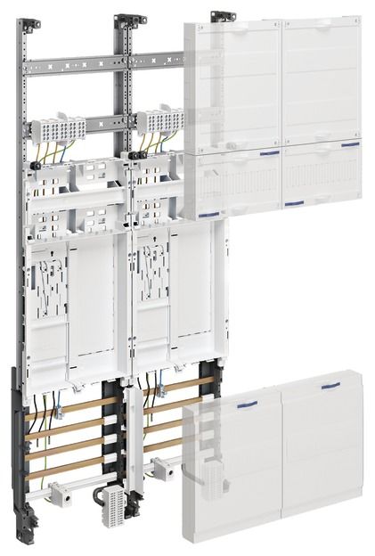 Meter fields with integrated fastening and contacting device (BKE-I) for eHZ, for installation of eHZ meter support plates in accordance with DIN VDE 0603-3-2, with integrated additional space (for communication and control devices).