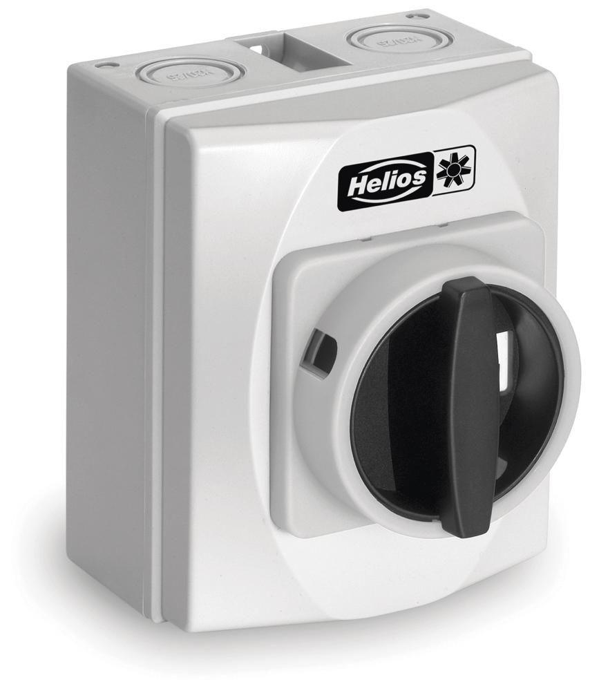 Revisions-/Hauptschalter 3-pole switch with auxiliary contact, in a plastic housing for surface mounting. Vice-ung "" means padlock closable. For single-speed and speed-controlled fans. Make: Helios CODE: