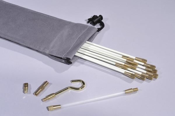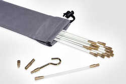 Cable Scout+ is a multifunctional tool for professional cable installation , which enables time-saving laying of cables under the most difficult conditions. Rods made of glass fiber reinforced plastic (GRP) can be loaded with a cable weight of up to 200 kg. The complete system includes fiberglass poles, a variety of useful accessories and a sturdy bag in which all components can be safely stored.
