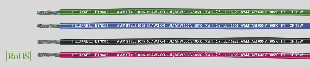 HELU SINGLE CORE UL Style 1015 HELUKABEL UL-CSA 600V.AWG 14GN Standard length: 305 M is offered by us in a sales unit of 305 meters If you need a larger quantity, you can contact us at any time. We will make a special offer for you