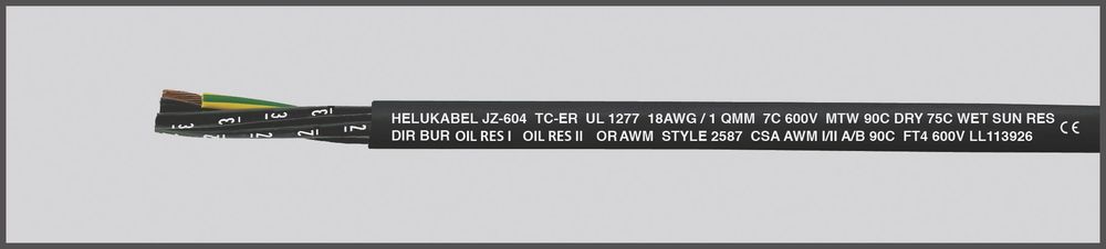 PVC power cable according to UL Std.1277 TRAY CABLEMultiple standardization also meets the following standards: AWM Style 2587 in accordance with UL Std.758 and CSA C22.2 No 210 I/II A/B 90°C 600 V