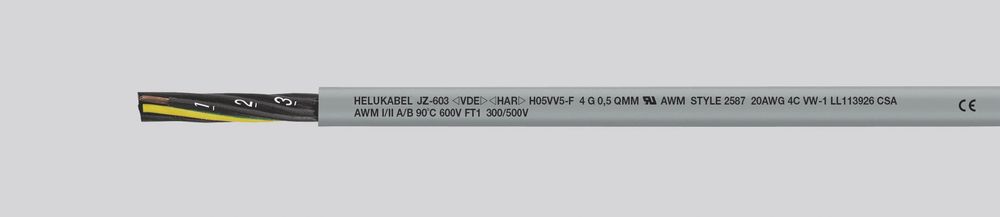 Special PVC hose cable with oil-resistant outer jacket in accordance with DIN VDE 0285-525-2-51 / DIN EN 50525-2-51 and UL Style 2587Temperature range HAR moving -5°C to +70°C fixed -40°C to +70°C UL/CSA moving -5°C to +90°C fixed -40°C to +90°C