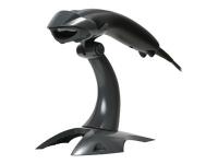 handheld scanner, retail, 1D, laser, IR bar code sensor, CodeGate function, 0-28cm reading distance, multi-interface (RS232, KBW, USB), protection class: IP42, incl.: cable (USB, coiled), stand, colour: light grey