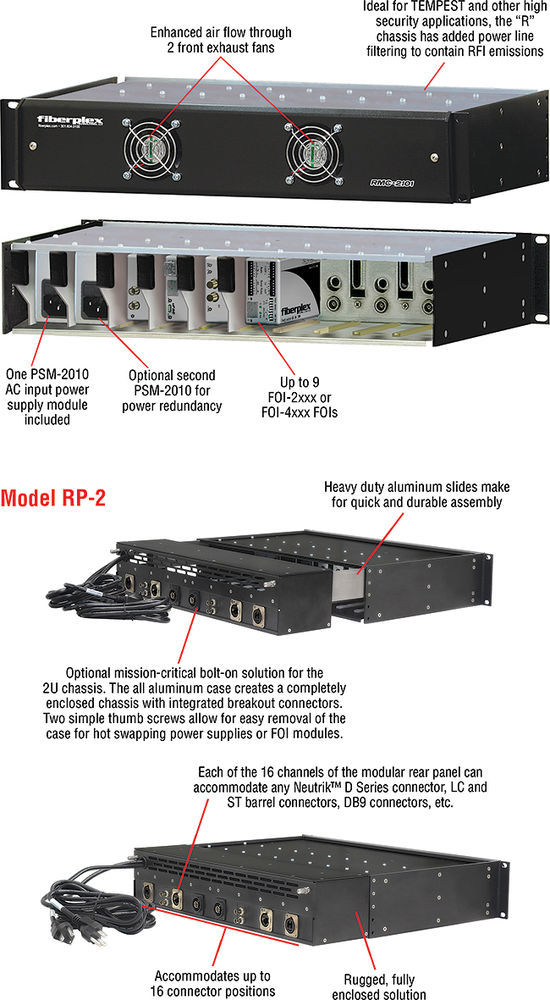 Patton FiberPlex Rack mount chassis 2U for 9 FOI -2XXX or FOI-4XXX