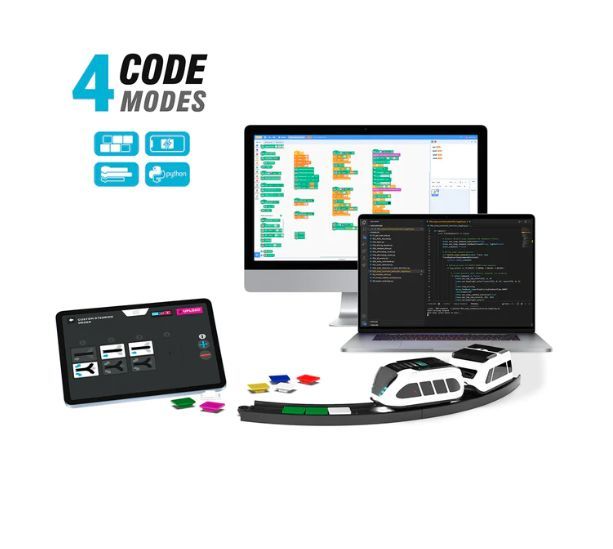 This set of 4 trains contains all the features and accessories to quickly use the smart trains at the beginning of a learning session. After the lesson, students can simply pack the trains and tracks back into the boxes with the molded plastic trays and store everything in the included storage bag.