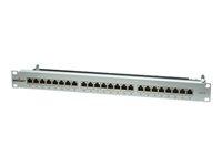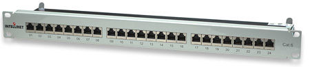 The article INTELLINET 720014 Cat6 Patch Panel, shielded 24 ports, FTP, 1U, terminal strips with 90 degrees angled cable entries is currently in stock