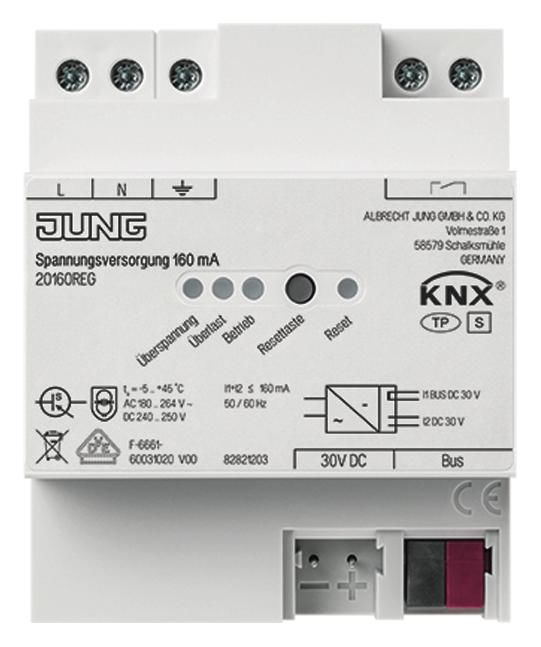 We offer you Jung 20160REG KNX power supply 160mA always at the best possible price. We can give you a discount of 2% on Jung 20160REG KNX power supply 160mA if you choose payment in advance on ordering.