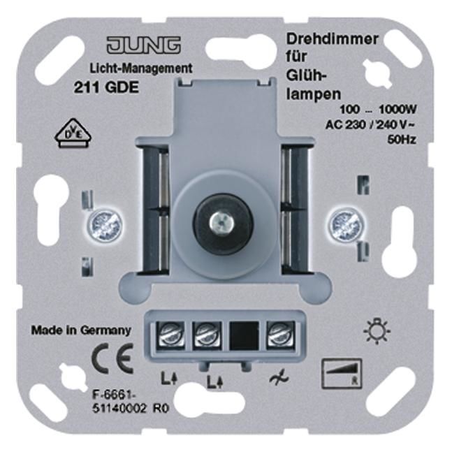 We offer you Jung 211GDE UP dimmer 100-1000W 211 GDE, with pressure two-switch always at the best possible price. We can give you a discount of 2% on Jung 211GDE UP dimmer 100-1000W 211 GDE, with pressure two-switch if you choose payment in advance on ordering.
