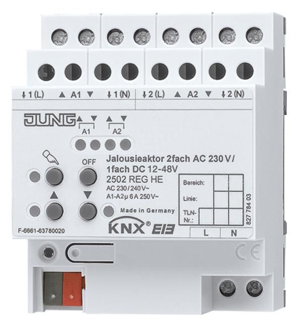 Jung 2502REGHE KNX Blind 2-fold , 230VAC 1-port 12-48VDC REG housing 4HP