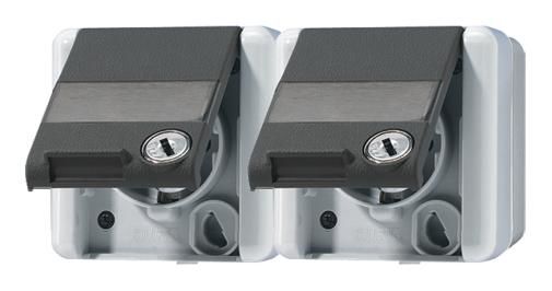 Jung 8220NAWSL Schuko double socket, IP44 WG800