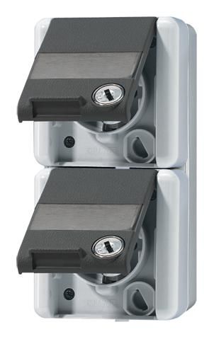 Jung 822NAWSL 822 NAWSL Schuko double socket, IP44 WG800 perpendicular 75x151x58mm