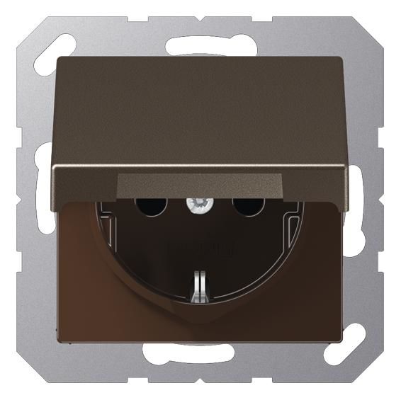 Jung A1520BFKIKLMO SCHUKO socket with hinged lid KI mocha