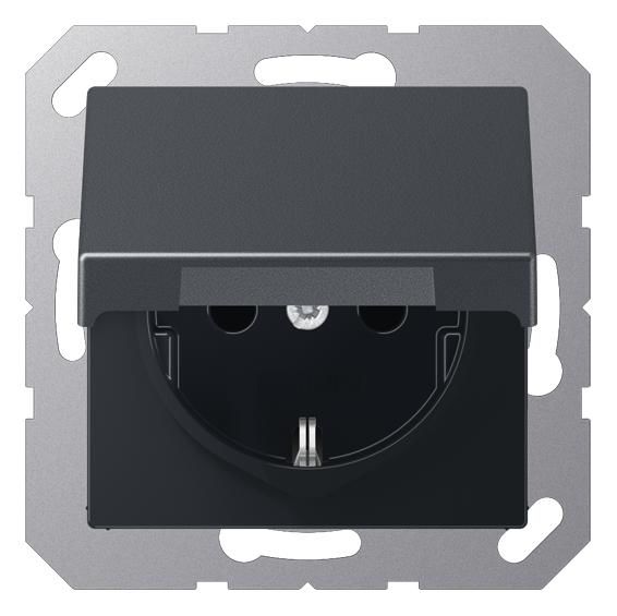 JUNG A1520BFKLANM Socket outlet m., Hinged lid 16A 250V ~ Serie A anthracite