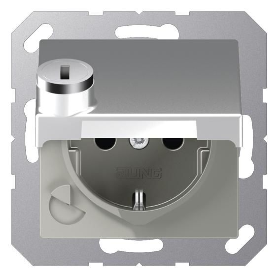 Jung A1520BFKLSLAL SCHUKO socket hinged cover lock series A aluminum