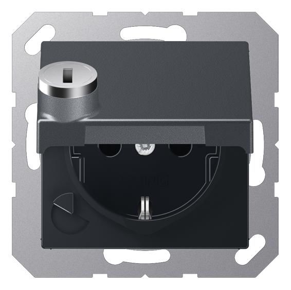 Jung A1520BFKLSLANM SCHUKO socket hinged cover lock series A anthr.matt