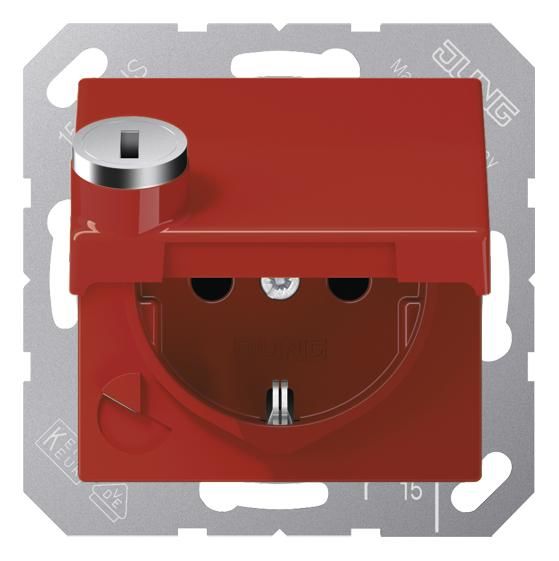 Jung AS1520BFKLSLRT SCHUKO socket with hinged lid red