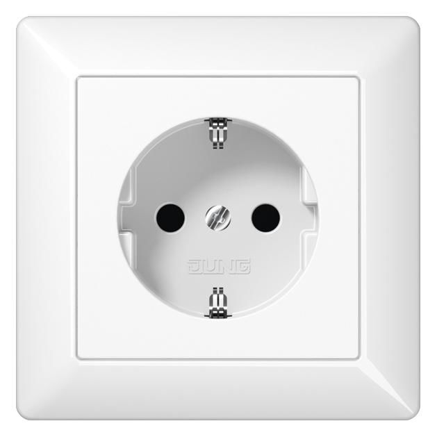 JUNG AS1520KIWW SCHUKO socket, full plate alpine white m.Kinderschutz