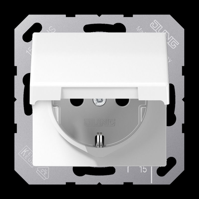 JUNG AS1520KLWW SCHUKO outlet, alpine white m.Klappdeckel