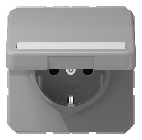 Jung CD1520BFNAKLGR SCHUKO socket hinged cover lettering field broken. Gray