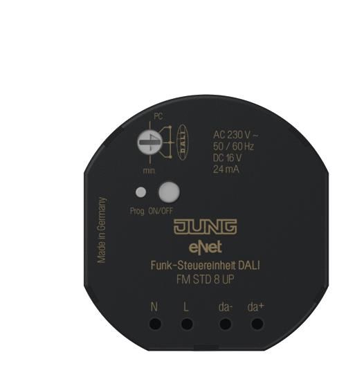 We offer you Jung FMSTD8UP radio control unit DALI, always at the best possible price. We can give you a discount of 2% on Jung FMSTD8UP radio control unit DALI, if you choose payment in advance on ordering.