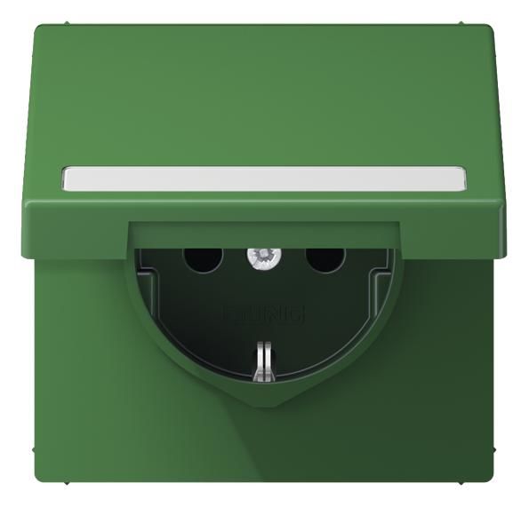 Jung LS1520BFNAKLGN SCHUKO socket with label and hinged lid, green