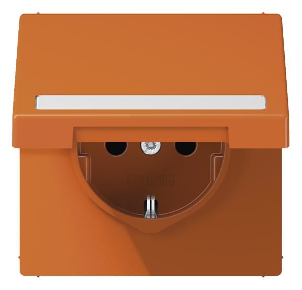 Jung LS1520BFNAKLO SCHUKO socket with label and hinged lid orange