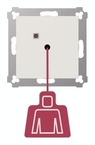An emergency call can be triggered in the bathroom/toilet via an easily accessible pull cord. The pull button can also be installed on the ceiling in the middle of the room so that it is easily accessible for people in need of help. A successful call is signaled by a red reassurance lamp on the button.