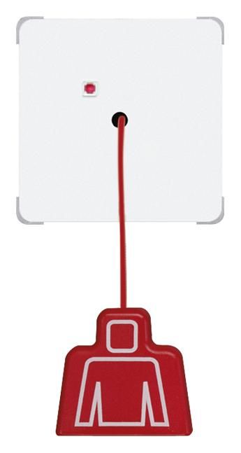 An emergency call can be triggered in the bathroom/toilet via an easily accessible pull cord. The pull button can also be installed on the ceiling in the middle of the room so that it is easily accessible for people in need of help. A successful call is signaled by a red reassurance lamp on the button.