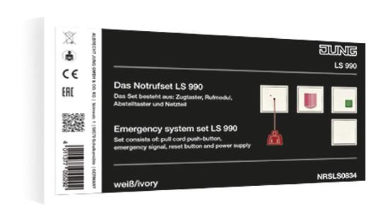 The JUNG emergency call system is used to call for help in handicapped-accessible toilet facilities. It meets the safety requirements of DIN VDE 0834.