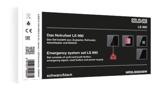 The JUNG emergency call system is used to call for help in handicapped-accessible toilet facilities. It meets the safety requirements of DIN VDE 0834.