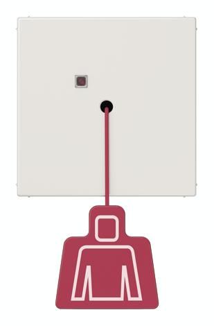 An emergency call can be triggered in the bathroom/toilet via an easily accessible pull cord. The pull button can also be installed on the ceiling in the middle of the room so that it is easily accessible for people in need of help. A successful call is signaled by a red reassurance lamp on the button.