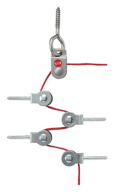 The set is designed for a circuit length of up to 20 meters. From the pull switch, the pull cord is guided around the room via block and bird rollers. The end is the tension spring with the eyebolt. The installation height for the pull cord is 0.40 m above the floor.