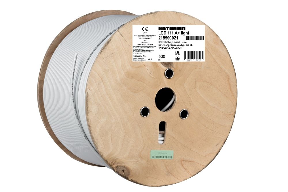 Kathrein coaxial cable LCD 111 A+ light 500m drum >130dB is offered by us in a sales unit of 500 meters If you need a larger quantity, you can contact us at any time. We will make a special offer for you