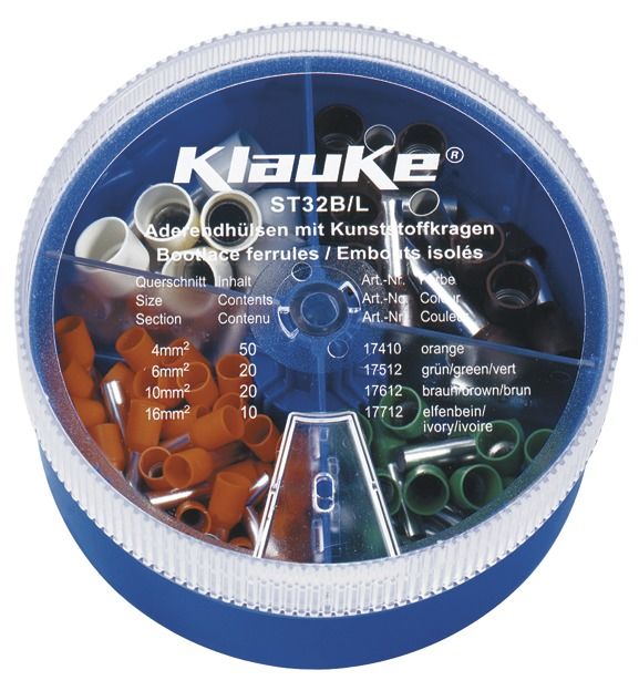 We offer you Klauke ST32B scatter box with wire end sleeve insulated 4-16qmm color code 2 DIN46228-4 always at the best possible price. We can give you a discount of 2% on Klauke ST32B scatter box with wire end sleeve insulated 4-16qmm color code 2 DIN46228-4 if you choose payment in advance on ordering.
