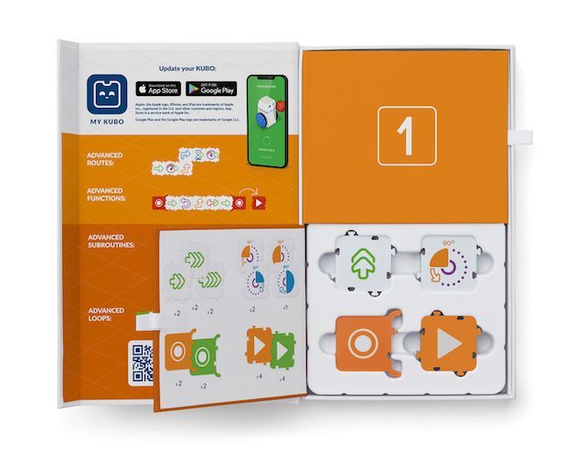 The set includes: 1x Wait 2, 5 and 10 seconds each TagTiles®, 1x each Walk slowly, Walk fast and Walk at maximum speed TagTiles® 4x Walk backwards and 2x turn TagTiles® 2x each Walk forward 2x, 3x or 4x TagTiles® 2x rotate each by 90 degrees and rotate once each by 180 degrees to the right and to the left TagTiles® Additional functional TagTiles® that create the opportunity for teamwork and team challenges. Free online certified standard-aligned curriculum materials including lesson plans, activity cards, worksheets, and comprehensive teacher guides available for download at portal.kubo.education *To use these TagTiles®, you need a KUBO Coding Starter Set