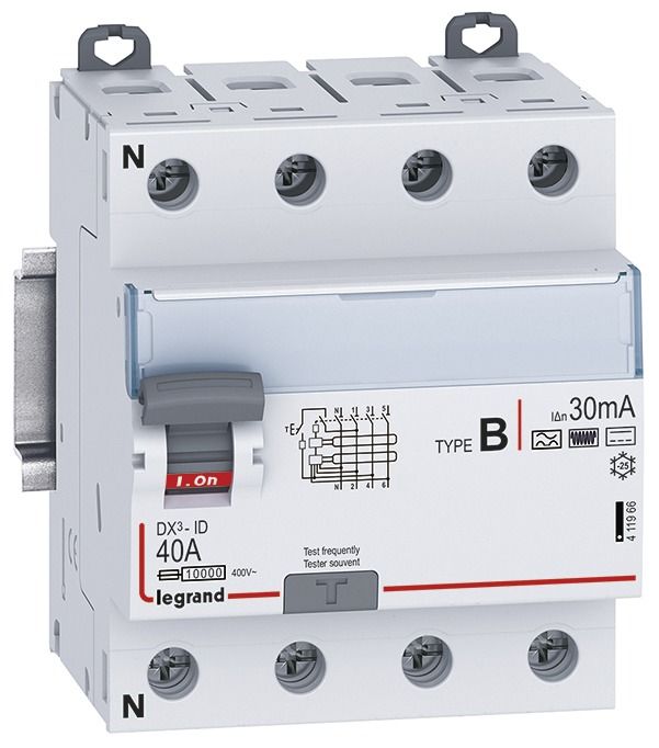 Legrand 411966 DX3 Fi-switch 40A 4-pole 30mA Type B 400VAC N-left 4TE