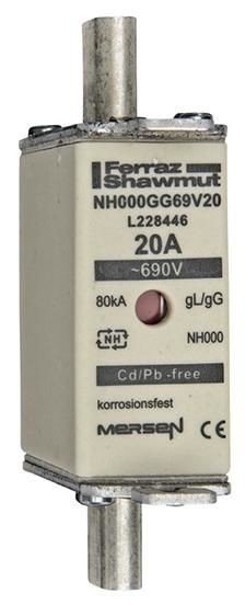 Lindner L228446 1C637. NH-fuse link, size 000 2.6W 20A 690VAC