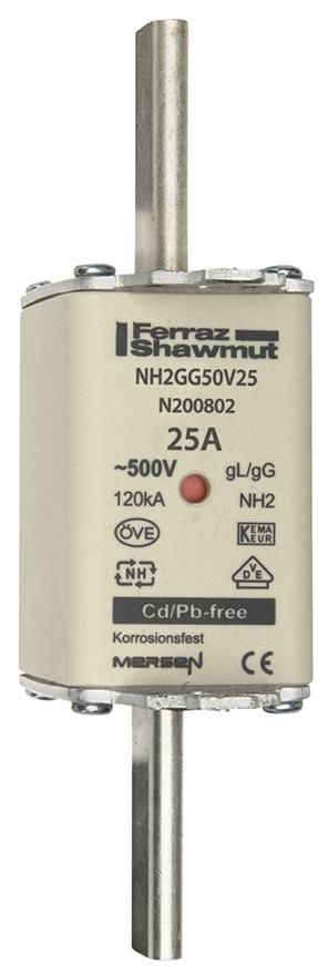Lindner N200802 C NH fuse, Size 2 25A 500VAC 440VDC (gL)-gG