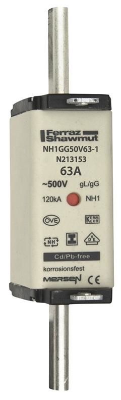 Lindner N213153 1F155. NH fuse, Size 1 63A 500VAC 440VDC 6.6W