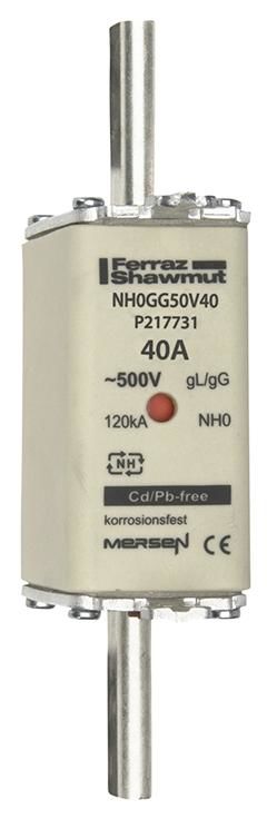 Lindner P217731 1B047. NH fuse, SFUE size 0 40A 500VAC 250VDC 3.7W