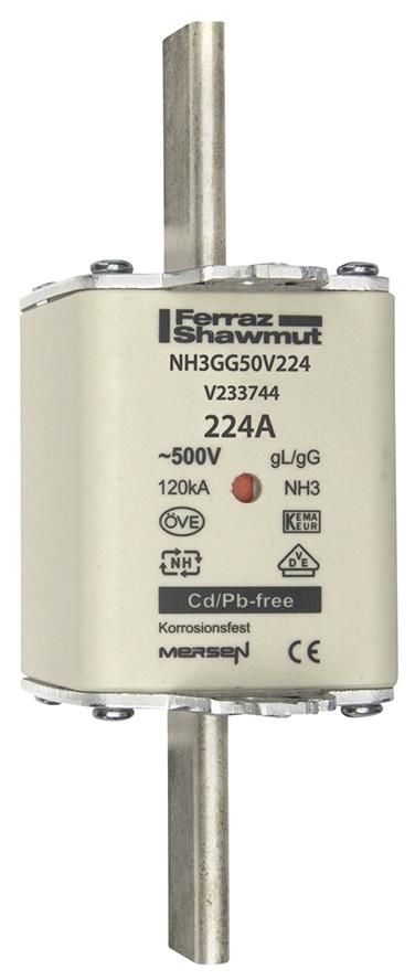 Lindner 1B373. LV HRC fuse, size 3 224A 20W 500VAC 440VDC