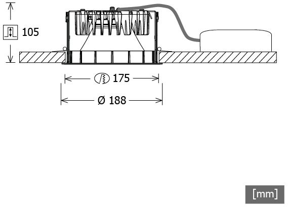 Cut-out size: 175 mm