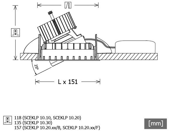 Installation depth: according to use mm