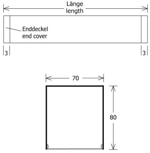 Dimensions (LxWxH): 855 x 70 x 80 mm