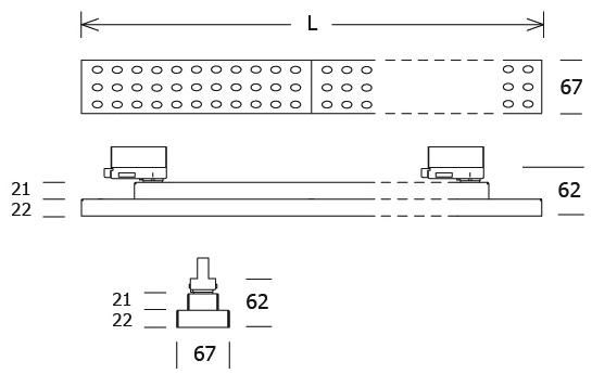 Dimensions (LxWxH): 867 x 67 x 62 mm
