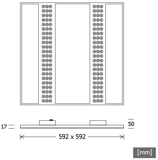 Dimensions (LxWxH): 592 x 592 x 50 mm