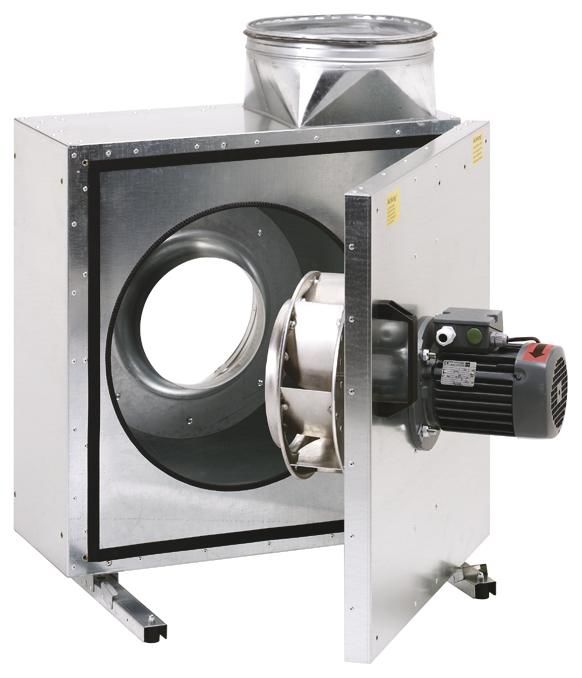 The series was specially developed for the tough operating conditions of a kitchen exhaust fan. Double-walled housing made of galvanized sheet steel for high demands on particularly low noise levels. Conveys medium to large air volumes with high resistance. Insensitive to hot conveying media up to 120° C. Connection nozzles on the suction and pressure side, for direct installation in ventilation ducts, with double sealing lips. With mounting rail and 4 vibration dampers. Fan unit can be swung out for cleaning and maintenance. Motor positioned outside the air flow. With condensate drain when the outlet nozzle points upwards. High-pressure radial impellers with backward-curved blades. Motor: Motor can be controlled by means of voltage reduction using transformers. Thermal contacts are connected to terminals. Full motor protection by external trigger device of type MAICO MVE 10. Protection class IP X4 with closed housing cover and suction and pressure side pipe connection. Speed controllable. Installation instructions: Installation with outlet nozzle pointing upwards, right or left. When installed with the exhaust nozzle pointing to the right or left, the inspection door must be converted on site. Electrical connection: External terminal box with cable gland. Safety instructions: Only operate the fan with free intake or exhaust if the impeller is protected against contact in accordance with DIN EN ISO 13857. To do this, attach a protective grille. Article: EKR 20-2, delivery volume: 1650 m3/h, delivery volumeNominal: 873 m3/h / in opt. efficiency, pressure pfs, nominal: 516 Pa - in opt. efficiency, speed nNominal: 2837 1/min - in opt. efficiency, speed: 2840 1/min, speed controllable: yes, voltage type: alternating current, rated voltage: 230 V, mains frequency: 50 Hz, rated power: 260 W / in opt. Efficiency, INom: 1.1 A / im opt. Efficiency, IMax: 1.8 A, Protection class: IP X4, Thermal class: F, Mains cable: 5 / 1.5 mm2, Installation position: vertical / horizontal, Material: galvanized sheet steel, Housing material: galvanized sheet steel, Color: silver, Weight: 29 kg, Weight with packaging: 34.38 kg, Fan can be swiveled out: yes, Nominal width: 200 mm, Width: 492 mm, Height: 571 mm, Depth: 485 mm, Width with packaging: 600 mm, Height with packaging: 680 mm, Depth with packaging: 600 mm, Conveyor temperature at IMax: -20 °C to 120 °C, Ambient temperature: 80 °C, Overall efficiency e: 46.1%, Measurement category: A, Efficiency category: static, Efficiency grade N: 62.9, VSD required: no, Year of manufacture: see type plate, Manufacturer name / Official Registration number / place of business of the manufacturer: Maico Elektroapparate-Fabrik GmbH / Register court Freiburg, HRB 601233 / Villingen-Schwenningen, PBEP / delivery volumeBEP / Pfs, BEP: 0.252 kW / 873 m3/h / 516 Pa, nBEP: 2837 1/min, specific ratio: approx. 1, Information on dismantling and disposal: see assembly instructions, Information on installation, operation and maintenance: see assembly instructions,Items used in the efficiency measurement that are not described by the measurement category: -, IBEP: 1.1 A, Sound power level LWA5: 73 dB(A), DC motor: false